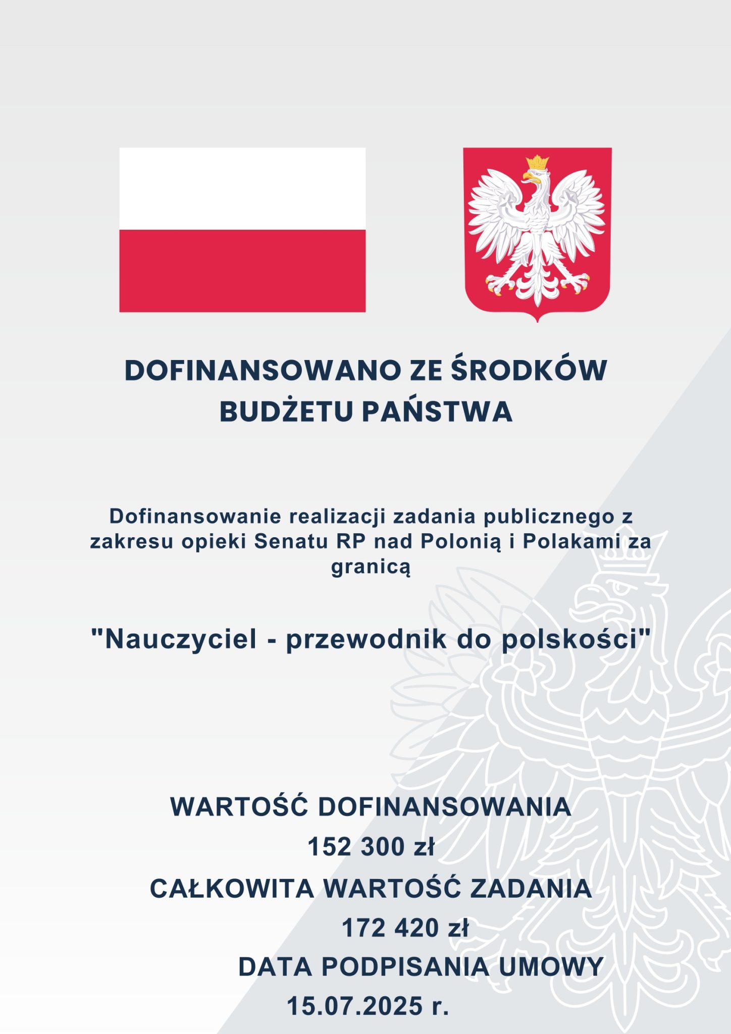 Projekt „Nauczyciel – Przewodnik do Polskości” dofinansowany przez Senat Rzeczypospolitej Polskiej, w ramach opieki nad Polonią i Polakami za granicą w 2025 roku.